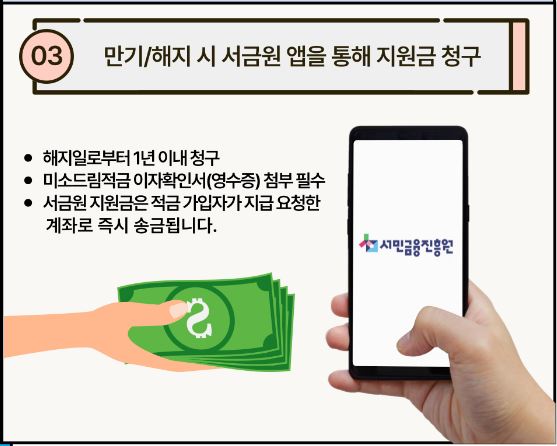 3. 만기/해지 시 서금원 앱을 통해 지원금 청구![]() |