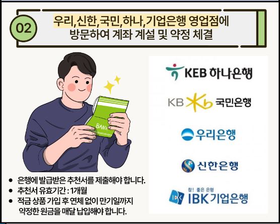 2. 우리, 신한, 국민, 하나, 기업은행 영업점에 방문해 계좌 계설 및 약정 체결![]() |