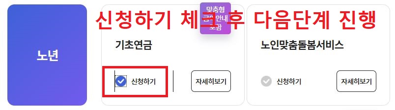 4. 기초연금 신청하기 체크 후 다음단계 진행![]() |