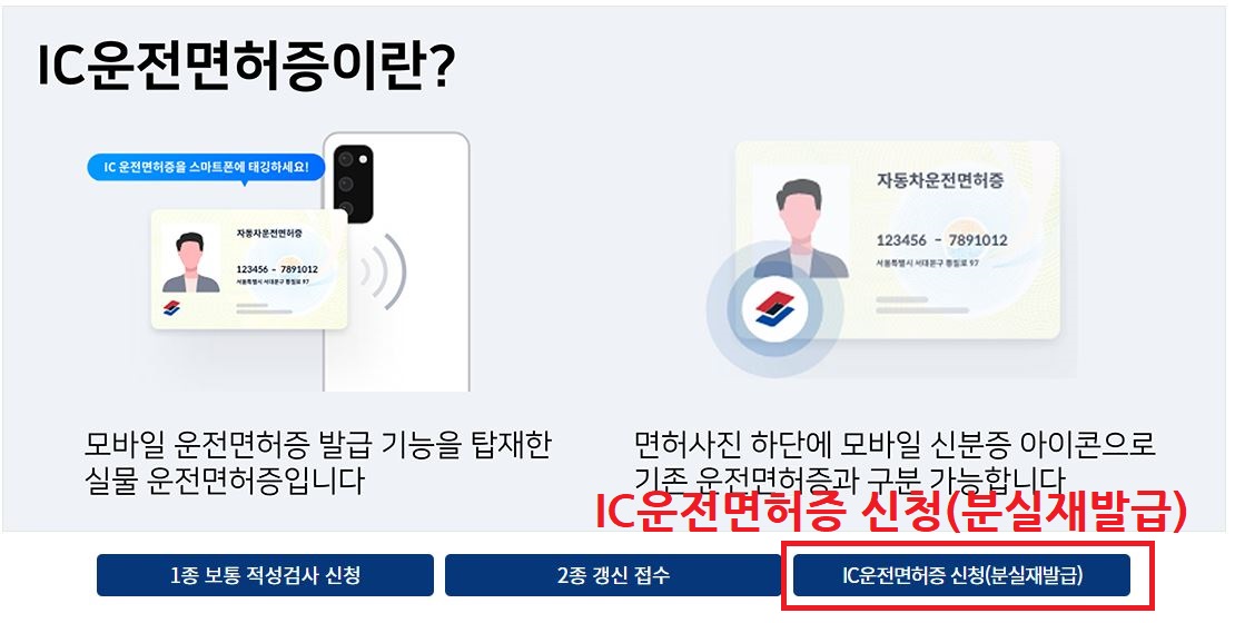 <IC 운전면허증 발급을 통한 모바일 운전면허증 신청 방법>