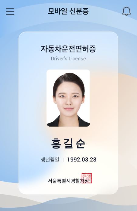 ◆ 2023. 8월 기준 모바일 신분증은 운전면허증, 국가보훈등록증이 있으며 내년 하반기쯤에는 모바일 운전면허증에 이어 모바일 주민등록도 도입될 예정입니다. 모든 모바일 면허증은 기존의 실물 면허증과 동일한 효력을 가지고 있습니다.