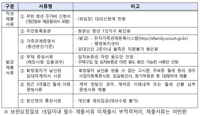 1) 부천시 청년 주거비 지원 사업의 자격요건