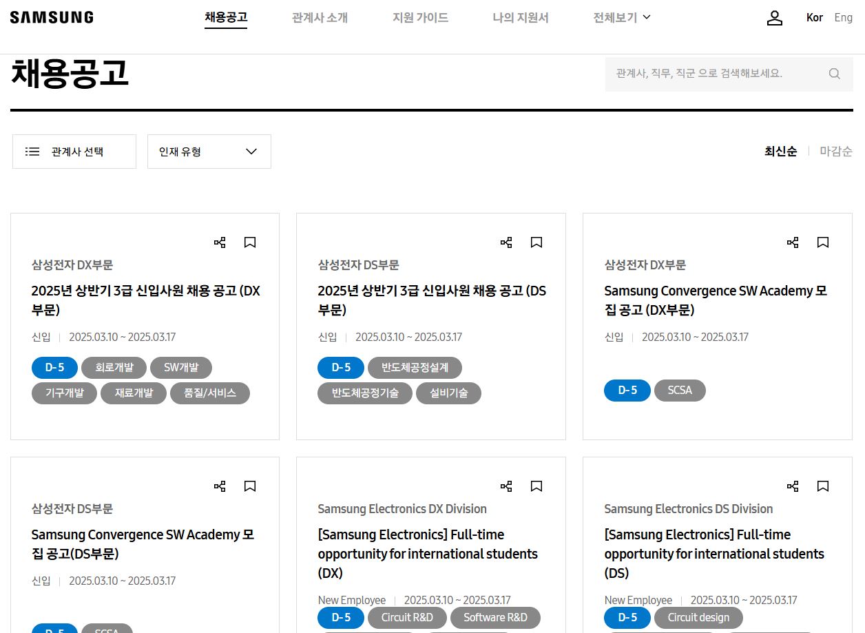 삼성전자는 글로벌 기업답게 다양한 부문에서 채용을 진행하고 있습니다. 삼성전자의 채용은 보통 상반기와 하반기 두 번에 걸쳐 진행되며, 공채와 수시채용으로 나눠집니다.