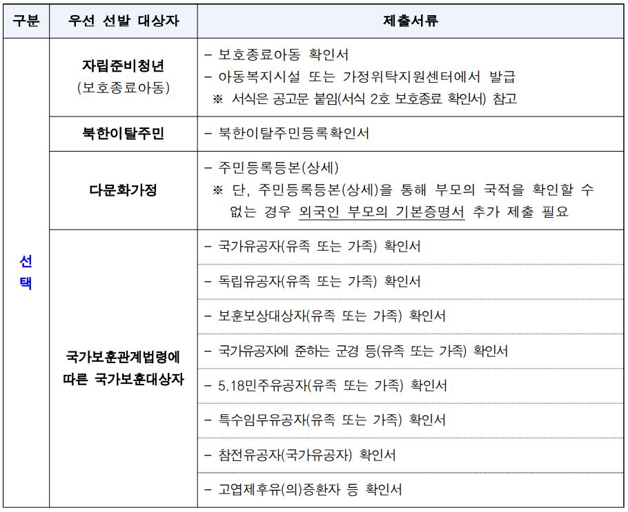 우선 선발 대상자는 아래의 해당 서류도 추가로 준비하셔야 합니다.