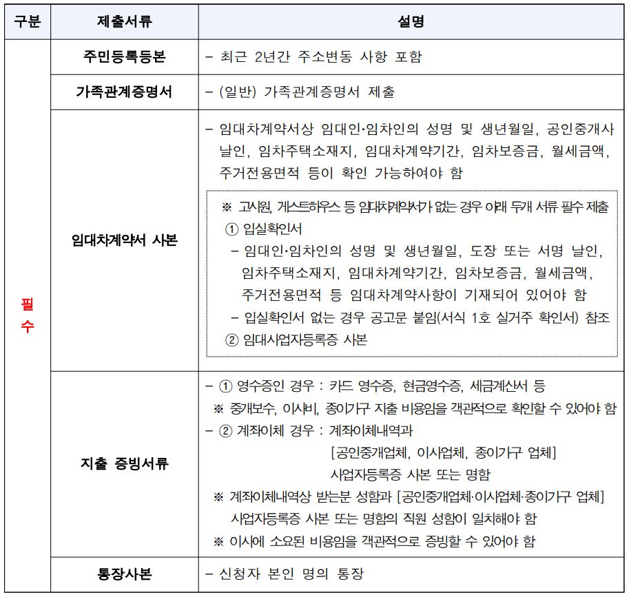 ※ 공공기관에서 발급받은 제출서류는 신청일 이전 1개월 이내 발급받는 서류로 제출
