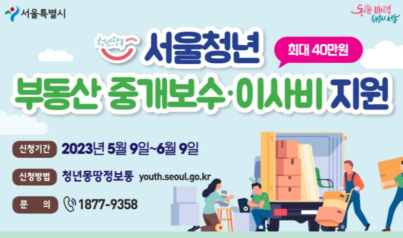 보통 이사할 때 부동산에 드는 비용과 이사비 때문에 고민이 많으실 겁니다. 서울시에서는 이사를 자주 하는 청년들의 주거비 부담을 줄여주기 위해 부동산 중개보수와 이사비를 지원해주고 있습니다. 일인당 최대 40만 원까지 지원해 준다고 하고 선착순으로 지원한다고 합니다. 여기서 바로 지원대상 및 신청방법 확인하시기 바랍니다.
