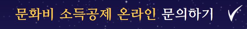 ◆ 문화비 소득공제는 한국문화정보원(문체부)에 문화비 소득공제 사업자로 등록된 사업자에게 문화비 상품을 구매하였을 경우에만 가능합니다. 아래 배너를 통해 문화비 사업자를 검색해 보시기 바랍니다.