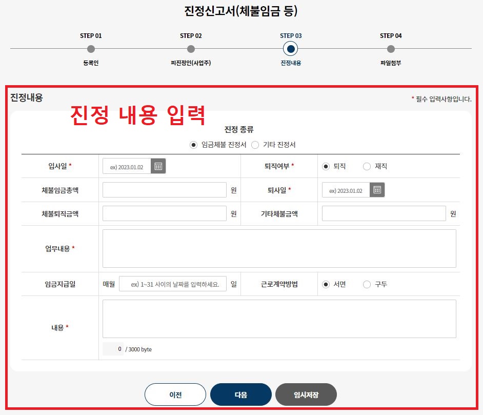 혹시 직접 방문이나 우편을 통해 임금체불 민원신청을 원하시는 분은 미리 서류 작성을 하시기 바랍니다.