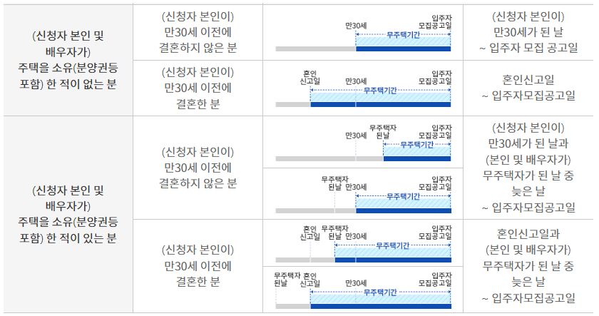 | X | X | 만 30세가 된 날~입주자모집 공고일 |