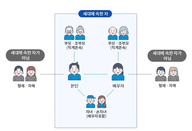 ◆ 부양가족은 크게 배우자, 직계존속(부모/조부모), 직계비속(자녀/손자녀)으로 구분합니다.