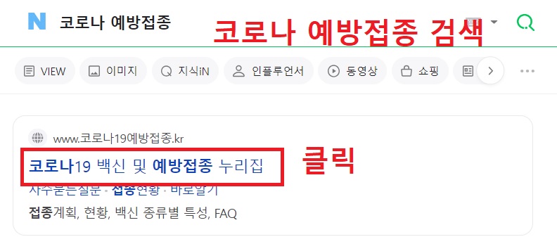1) 인터넷 검색포털에 '코로나 예방접종'을 검색합니다.