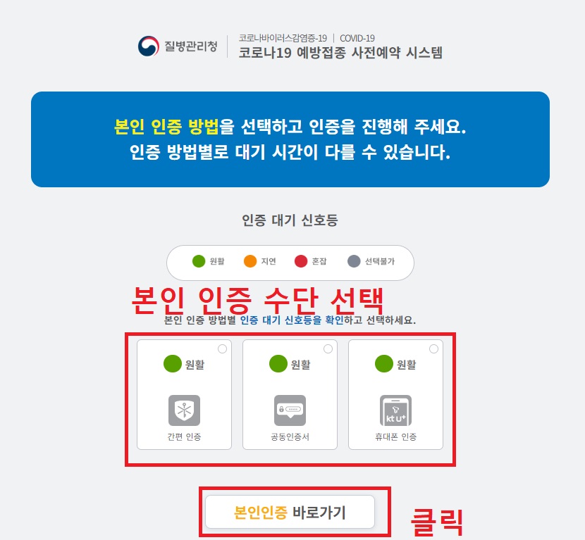 4) 본인 인증 수단을 선택한 후 본인인증을 진행합니다.