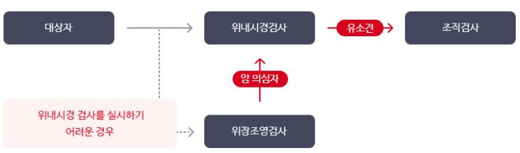 2. 대장암 : 50세 이상 1년 주기로 분변잠혈검사 (대변검사) 실시