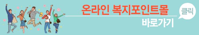 | - 2~4차 신청 후 승인 시 온라인 시스템 계정으로 차수당 30만 포인트(1원/포인트) 지급 - 사용 : 지급받은 포인트를 사용하여 온라인사이트 내 복지몰에서 직접 구매 ※ 건강관리, 문화생활, 가족친화, 자기계발 등 복지몰 내 컨텐츠 이용 |