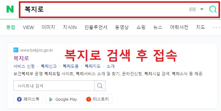 1) 인터넷에서 복지로 홈페이지를 검색해 접속합니다.