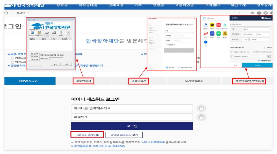 3. 공동인증서/금융인증서/간편 인증 후 로그인