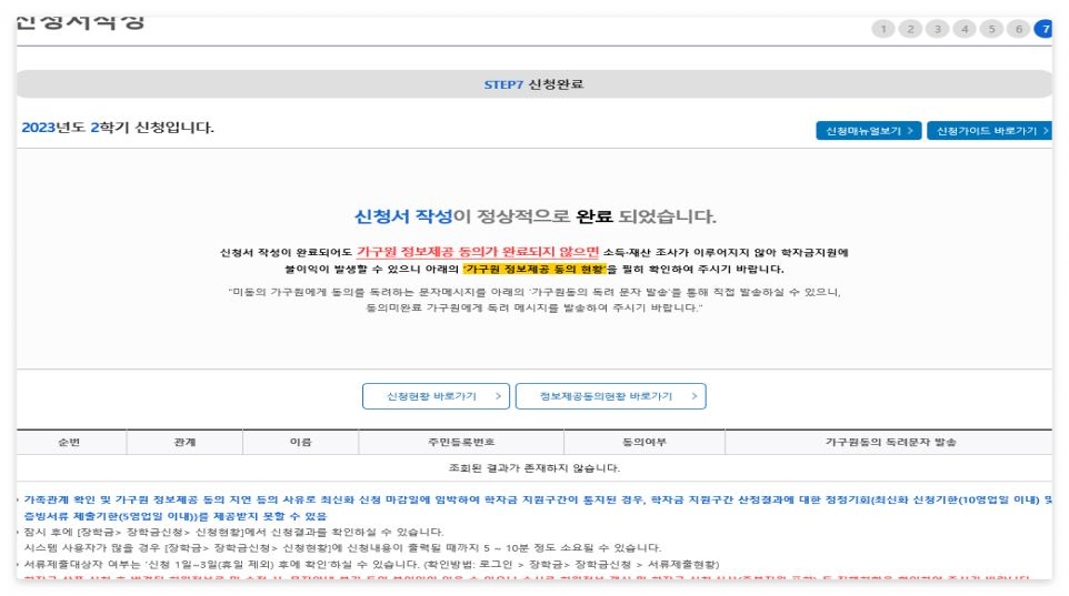 | ✔ 반드시 본인 명의로 신청 ✔ 정확한 소속대학의로 신청 ✔ 본인의 정확한 학적 입력 ✔ 다자녀 정보 정확히 입력 ✔ 가구원 동의 및 서류제출 완료 필수 ✔ 공동인증서 또는 금융인증서 또는 민간 인증서 발급 후 기한 내 신청 ✔ 최종 신청완료 여부 확인 |