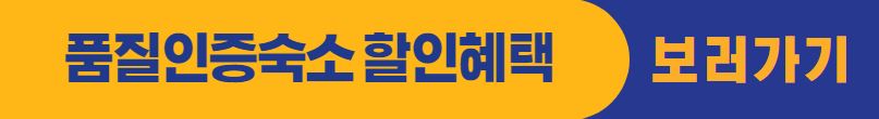 아래에서 품질인증숙소 할인혜택을 확인하시기 바랍니다.(예산 소진 시 조기 마감 가능)