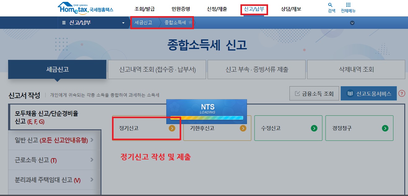 종합소득세는 여기에서 신고하시기 바랍니다.